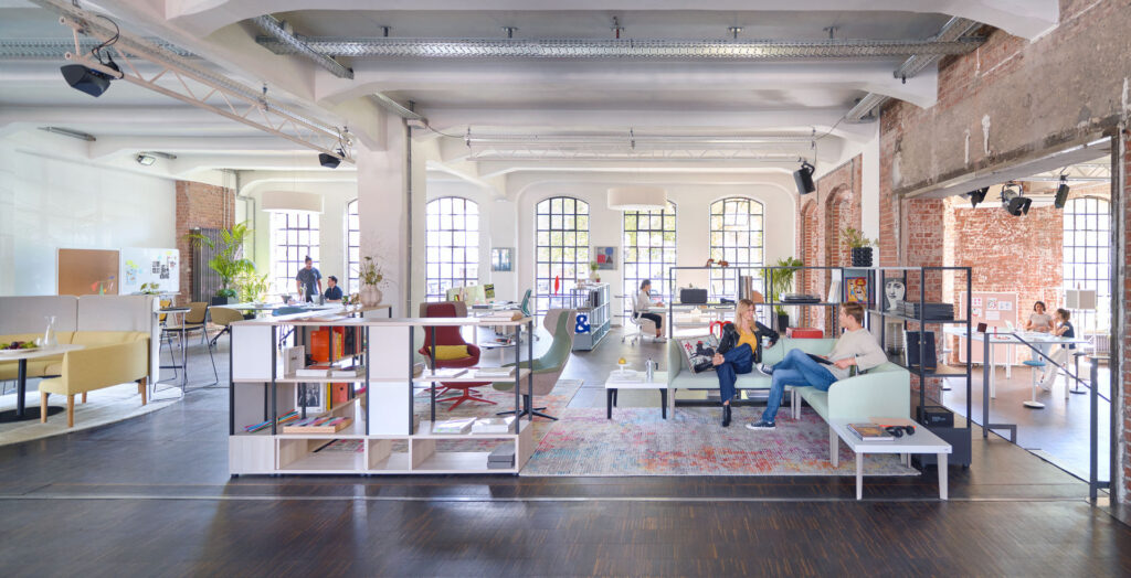 Arbeiten in Bürolandschaften wird zunehmend mit non-territorialem Arbeiten kombiniert. Das bedeutet, dass alle oder ein Teil der Beschäftigten auf einen fest zugewiesenen Arbeitsplatz verzichten.
