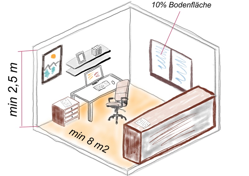 Falls Sie erwägen, mehrere kleine Räume zu einer größeren Büroeinheit zusammenzufassen, sollten Sie nicht nur auf die Statik des Gebäudes, sondern auch auf die Raumhöhen achten. Folgende Raumhöhen sind einzuhalten: